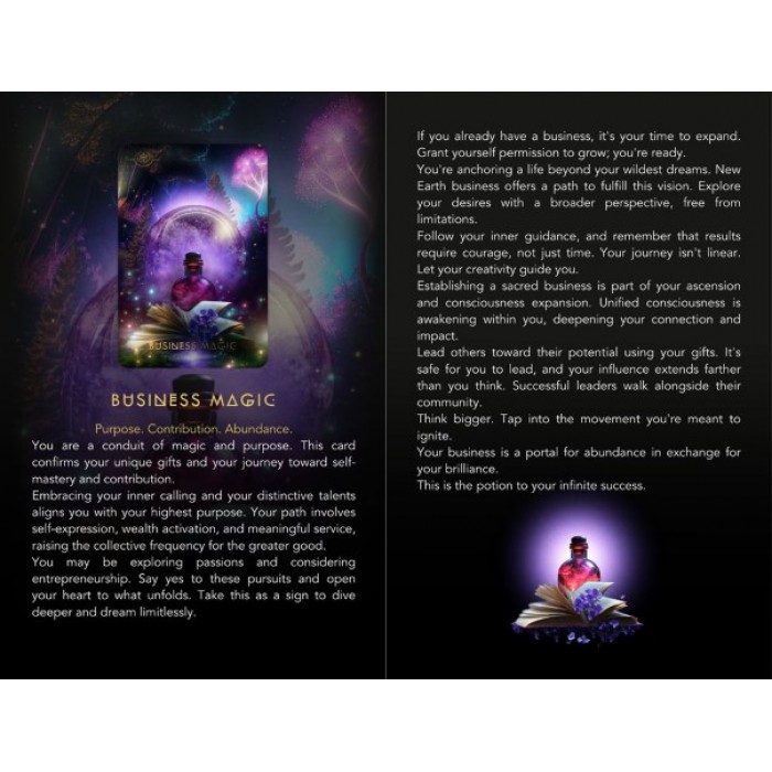 Creatrix Awakened Oracle Deck whispers the wisdom of fierce feminine frequency leaders, guiding the way to the golden age with a path illuminated by love and sovereignty. They stand as luminaries among leaders, passionately advocating for their soul mission, the children, and their ancestors, holding their wild hearts wide open in devoted service to humanity. Amidst the world's perceived crumbling, they step into even bolder action and soul-centered beingness, remaining the calm eye in the storm, unwaveringly envisioning a paradise and interconnected way of living that they anchor through their very presence. These potent goddesses of creation weave a tapestry of ancient and galactic wisdom in every heartbeat. Each cell within them is a sacred devotion to the infinite possibilities and the rising frequencies of the emerging earth. They embody the forces of nature, true visionaries embracing their sacred feminine power, beckoning forth all souls ready to be activated into their leadership and sovereignty for the grand collective rising.