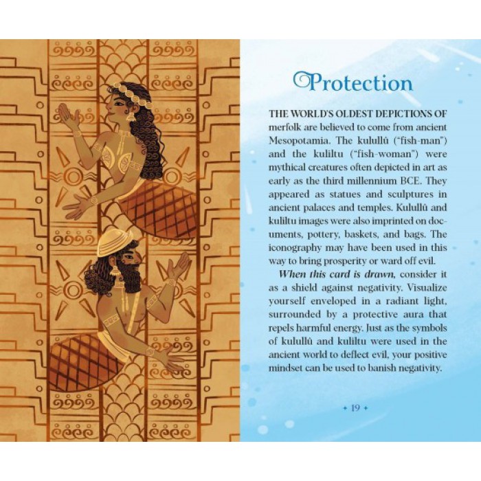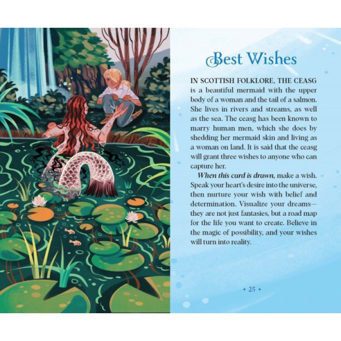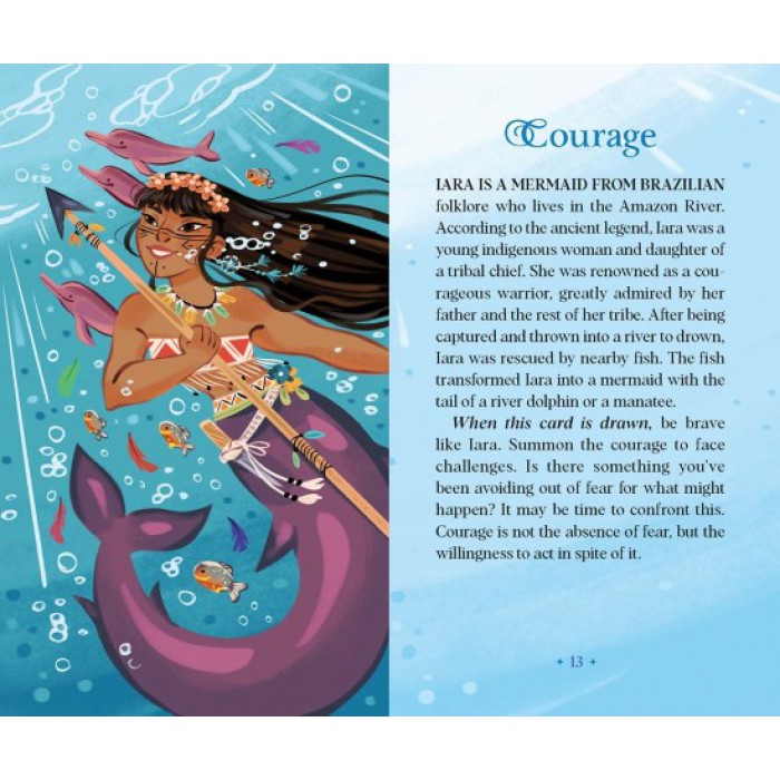 - Gorgeously Illustrated: This vibrantly illustrated oracle deck and guidebook brings together mermaids, mermen, and other aquatic beings from global literary and folk traditions. Each of the 40 cards in this deck is illustrated with stunningly original artwork that brings the magic of merfolk—from the immortal Grecian mermaid, Glaucus; to the Brazilian warrior mermaid, Iara—to new and fascinating life.