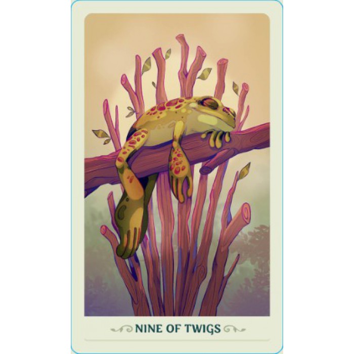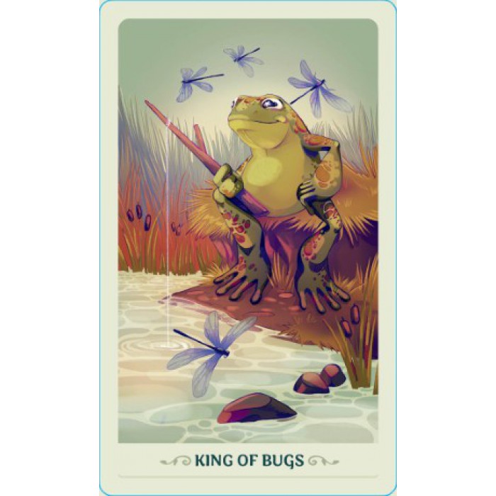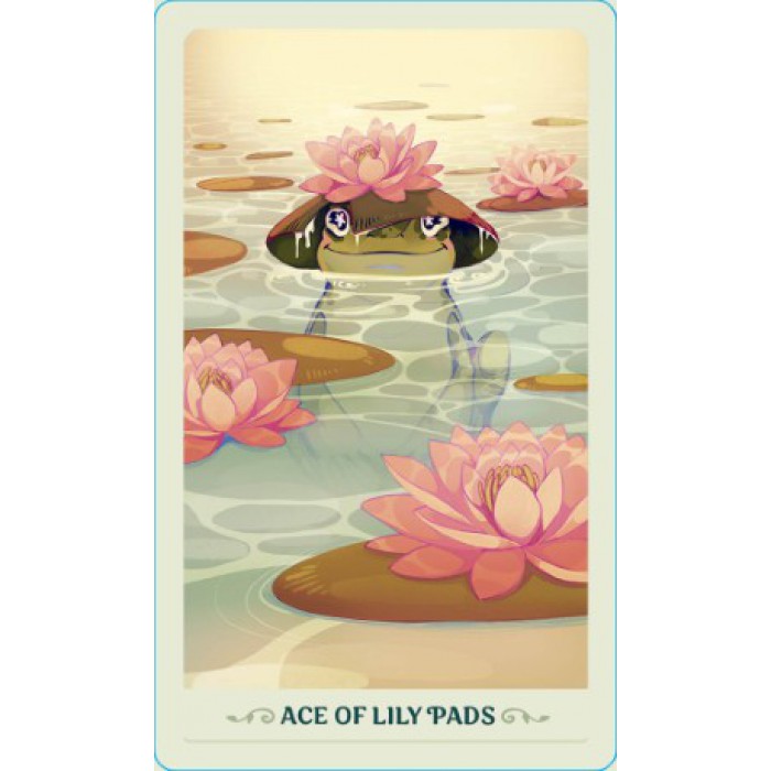 This charming deck reimagines the classic Rider-Waite Tarot as a world of frogs, with the suits transformed into Shrooms, Twigs, Lily Pads, and Bugs.
