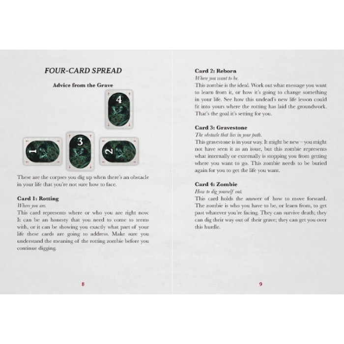 It's time to take your life advice from beyond the grave, and the undead have plenty to say. Life can throw unexpected turns at any point but these zombies have the lived experience - and the brains - to help you through it. When you channel a zombie as your guide you can survive anything - and there's a whole horde in this deck to call on. This 36-card oracle deck and booklet bring the collective wisdom of the zombie horde to bear on your problems. They've been there, done that; who better to sort out the problems of the living?